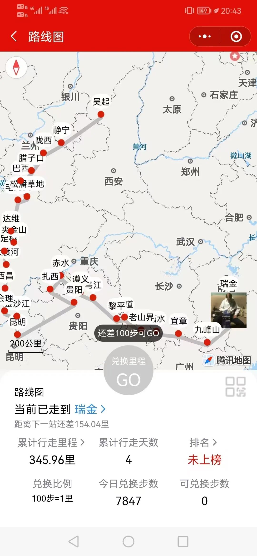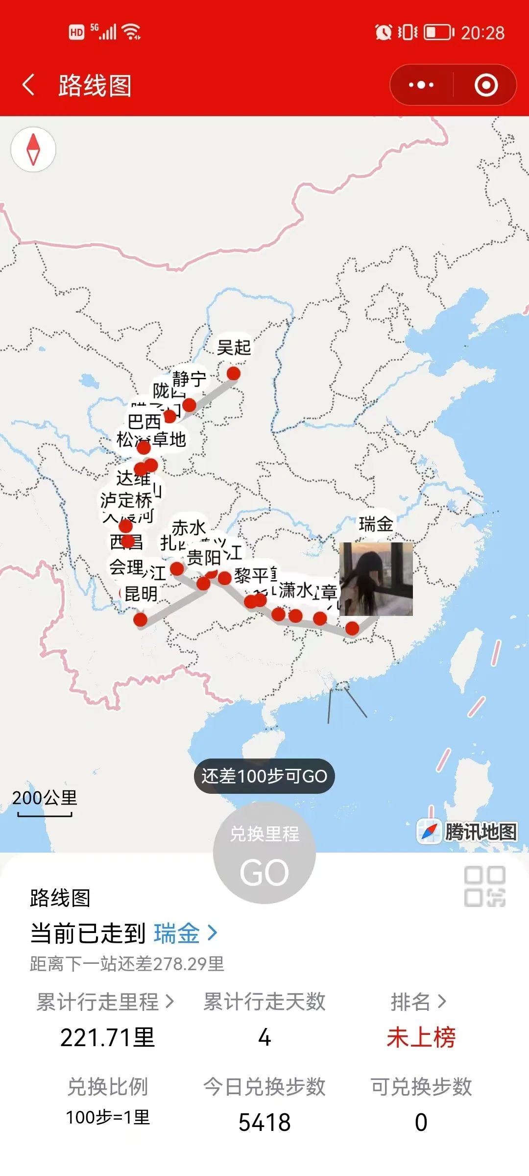 为体验红军两万五千里长征的艰苦和革命先烈的顽强精神,扎实推进党史学习教育走深走实,培养学生不怕吃苦,敢于争先的革命主义精神。我院于9月19日开展以“重走长征路 绿色健康行”为主题的云上健步走活动。本次活动参与人员共计20人,由党总支副书记&团总支书记张雪组织参加。