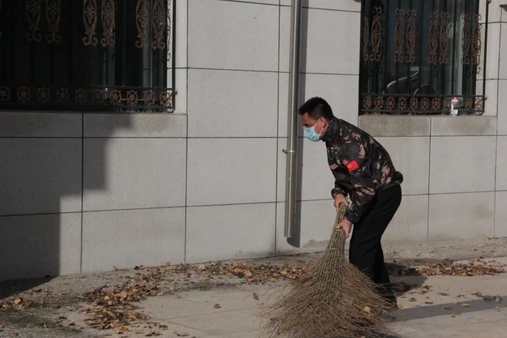 刘书记与学生一起清理场地