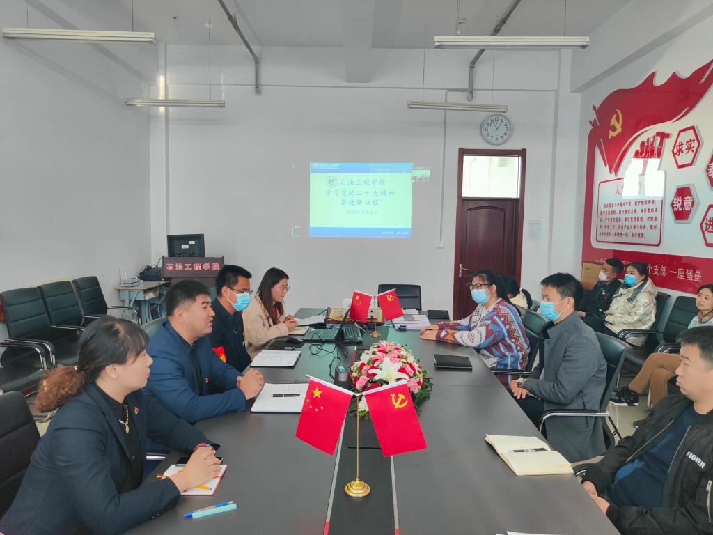 随后,院长李岳祥强调,全院干部师生要着力提高政治站位,切实把思想和行动统一到党的二十大精神上来。站在新的历史起点上,石油工程学院要始终坚持党的全面领导,坚持社会主义办学方向,坚持把发展科技第一生产力、培养人才第一资源、增强创新第一动力有效结合起来,全力提升高校科技创新能力和现代化治理水平,积极服务科教兴国战略、人才强国战略、创新驱动发展战略,在中国式的教育现代化的征程中努力贡献力量。