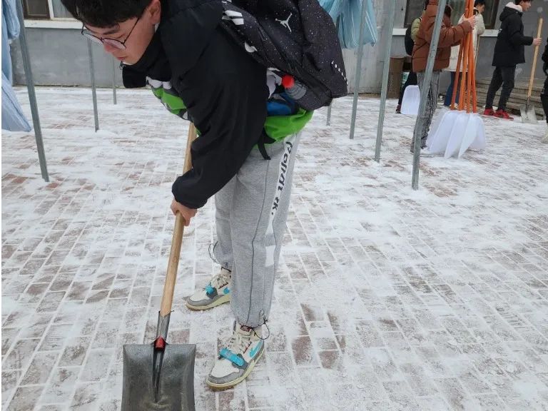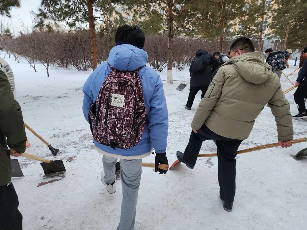 凛冽的寒风丝毫没有影响师生们的热情和工作效率,在寒冷的环境中,大家互相团结协作,不畏严寒,有序的清理道路积雪。经过师生的配合和奋力的打扫,多条通行道上的积雪情况得到解决,及时保证了校区内道路的安全畅通,为同学们的生活与安全出行带来了便捷。劳动的过程充满欢声笑语,大家乐在其中,师生队伍清扫积雪的劳动场面成了校园中一道靓丽的风景。