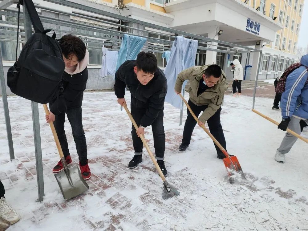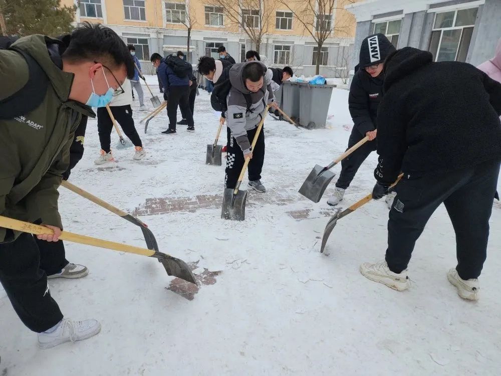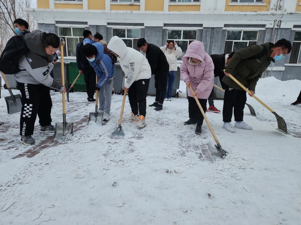 23年3月初,伴随着冷空气持续回流,哈尔滨地区迎来一次降雪。为深入学习贯彻践行党的二十大精神,弘扬劳动最光荣的价值取向,将所学所想投入实际行动,将劳动精神融入学生日常生活,为大家的出行安全保加护航。3月2日,我院积极开展有组织有纪律的扫雪劳动活动,同心协力清除路面积雪,排除潜在危险,确保师生出行的安全与便利。