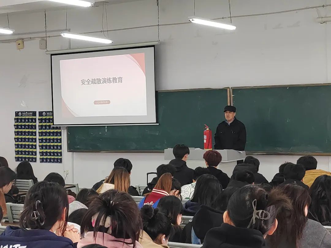 为切实提高广大师生消防安全意识和自防自救能力,于4月2日,学校保卫处张学斌副处长、消防科科长赵胜林为我院学生进行安全疏散教育以及指导演练。