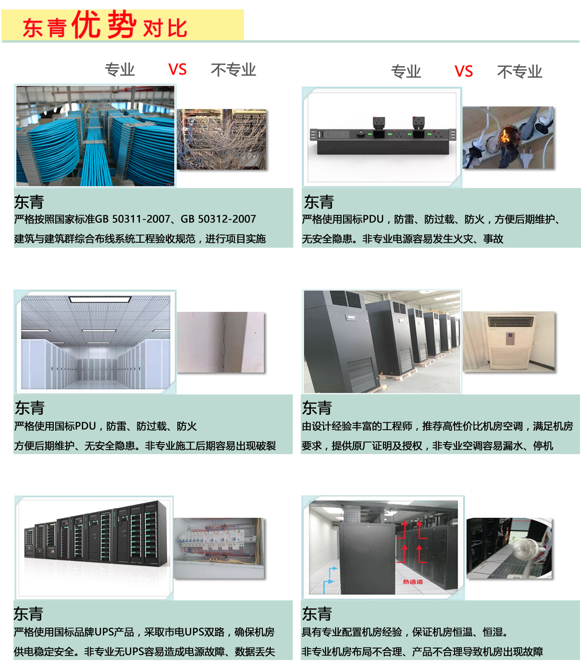 北京东青互联科技有限公司(以下简称“东青”)注册资金5000万,具有电子与建筑智能化一级、安防一级、音视频一级、装修工程二级、消防工程二级、环保工程三级、建筑机电安装工程三级、建筑工程施工总承包三级、机电工程施工总承包三级,信息系统集成叁级资质,机房行业协会理事会员,ISO9001质量管理体系认证、ISO14001环境管理体系认证、OHSAS18001职业健康认证,ISO20000服务管理体系认证,ISO27001信息安全管理体系认证企业,AAA信誉等级,中关村高新技术企业,中关村企业信用促进会会员,北京安全防范行业协会会员。