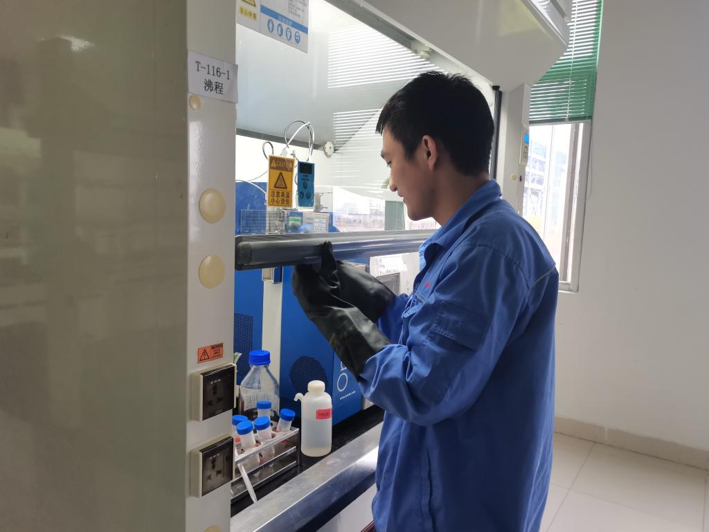 初入企业时,在安全教育培训后,进入不同的实验室进行学习。首先学习标准溶液室工作内容,从最基本的移液枪取液和配溶液所需的水质开始学习。所谓的标准溶液室,就是全部化验室所用的溶液都出自这里,用的都是这里的标准溶液,所标定的溶液浓度被作为一个标准来使用。经过多次练习,目前我已经能够熟练的掌握这门技术,为接下来的分析实验打下了良好的基础。在循环水分析室中,学习了循环水中的总碱度、总硬度、总磷等指标的检测。班长为我们耐心细致讲解了循环水分析的目的及意义,并带领我们去车间取水样,教我们实验分析的原理和操作时应该注意的事项。在丙烯腈部门讲解了AN水分、MMA水分、丙酮氰醇、PH等,掌握了质检中心化验室的大多数分析工作,并能独立完成各项目分析,但仍有许多问题需要在实践中不断地总结研究,才能使自己的技能水平逐渐提高。在这里我们可以将学校里所学的理论知识有机结合起来使得分析过程更明了、更容易。
