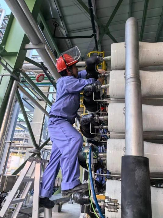 我现在在恒力石化(惠州)有限公司进行实习,现在是一名设备技术员。实习期间,我参与了醋酸回收RO膜系统的检修;还参与了搅拌器的机封更换和维修工作;在日常的工作中是在干燥机,进行巡检和卫生清理工作。有时还会去参与RPF滤座的清理,拆除和更换工作;以下几张照片是我参与维修的照片。