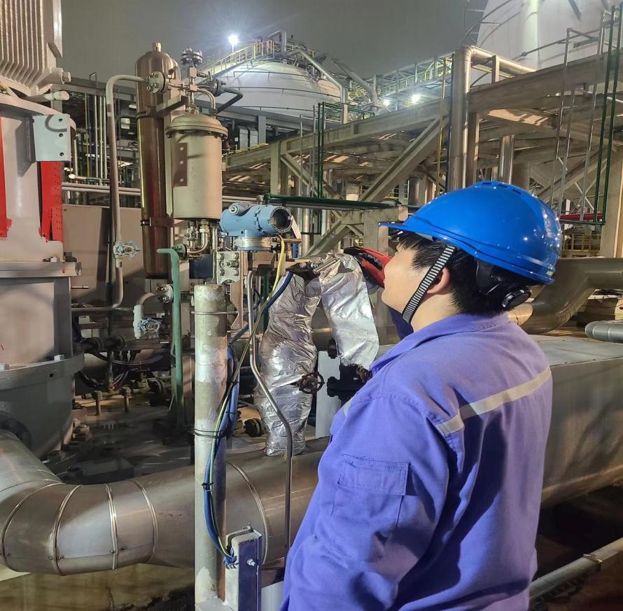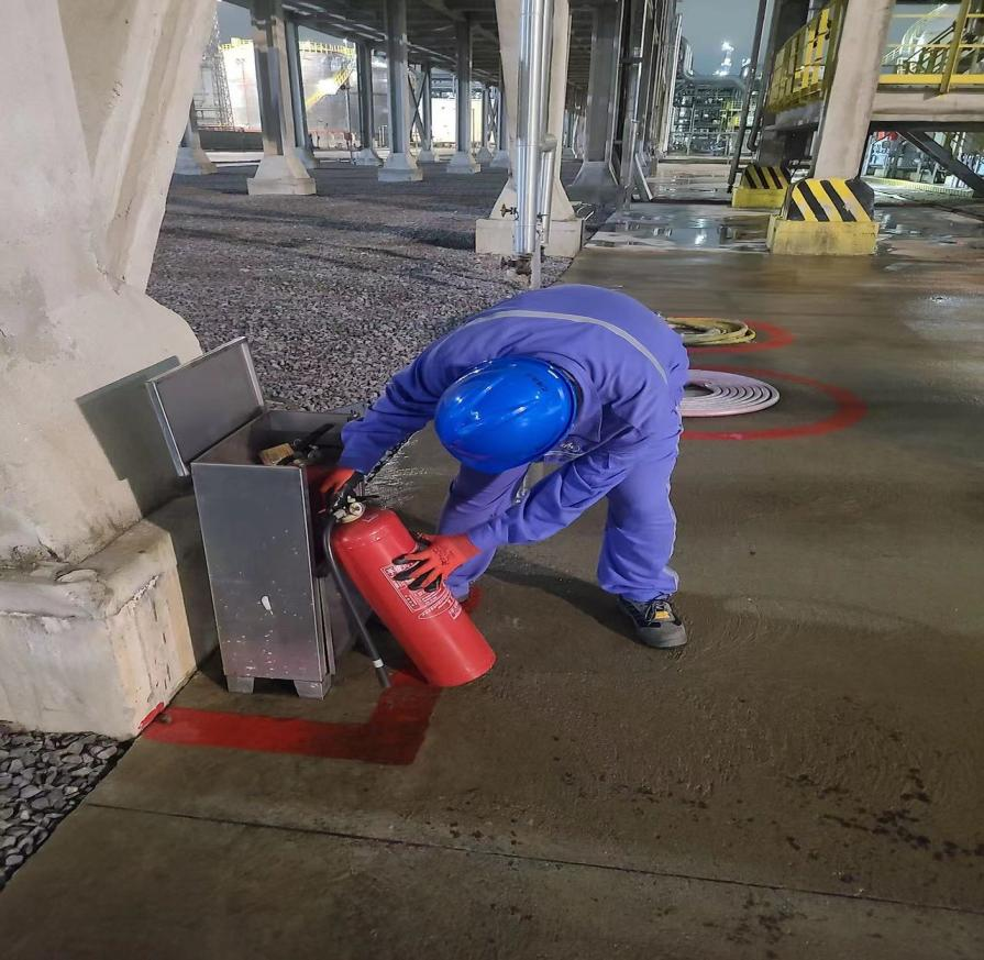 我目前主要负责压力罐区的巡检,巡检的主要内容有:1、压力罐区分布着12个需要打卡的点位,在上班的12个小时期间,每两小时需要把这12个点位打一遍然后长传到后台系统当中。在师傅带领我巡检过一次之后,我记住了巡检的路线以及点的具体位置,已经可以独立完成12个点的打卡了。 2、巡检打点的途中要检查储罐是否跑、冒、滴、漏,检查储罐液位、温度、压力的变化情况,检查储罐运行状况流程是否正确,检查储罐附件是否完好。还有机泵的运行状态、声音、温度等是否有异常。入班组的这段时间,我在师傅的带领下学习了很多理论和实操的知识,包括PID图的认识及绘制,雨淋阀的认识,空气呼吸器的检查、佩戴、保养、化工罐区的平面布置图,以及储罐的物料性质和基本知识。