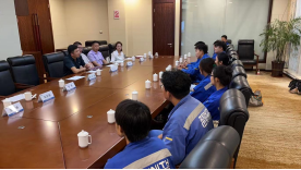 中天钢铁集团(南通)有限公司党委书记耿冬雷就冯研一行的到来表示了欢迎。他对企业目前的发展现状和未来的规划做了汇报,耿书记表示与冰球突破豪华版官方网站合作以来,冰球官网学子在企表现出色,有很强的学习能力,不畏艰辛,充分体现了冰球突破豪华版官方网站的铁人精神。