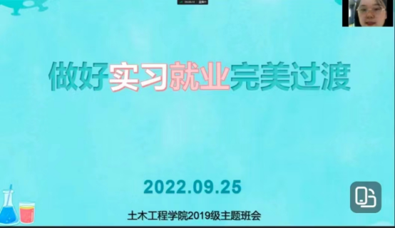 为了让土木工程学院2019级学生在“3+1”企业综合实习期间能够珍惜实习机会,在岗位上不断增长才干,提升素养,锻炼技能,不断提升就业能力,同时在岗位上做好实习走向就业的准备,土木工程学院2019级于2022年9月25日19:30召开线上主题教育班会——做好实习和就业的完美过渡。