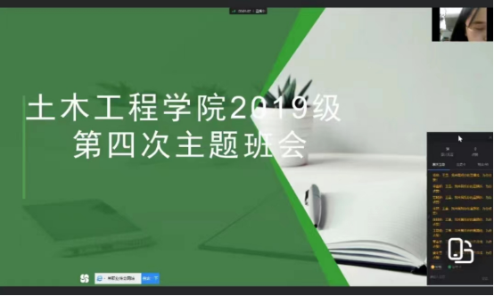 为在“3+1”企业综合实习期间增进学生交流,加强学生管理,土木工程学院2019级于2022年10月12日19:30分,召开本学期第四次线上主题教育班会.