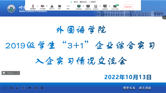为时刻推进冰球官网“3+1”人才培养模式,关注和落实好学生实习在岗情况和自主考研考公进程,10月13日,外国语学院召开2019级“3+1”企业综合实习就业工作班会,会议由辅导员郑智慧主持。