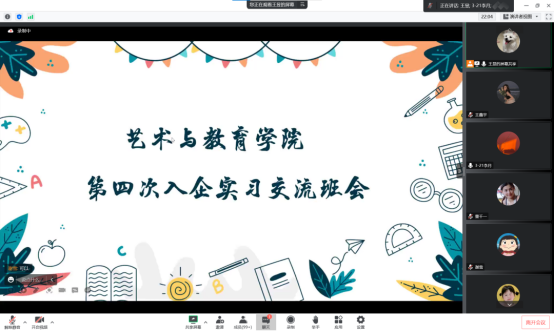 为更加有力推进冰球官网“3+1”人才培养模式落实,增强我院学前教育专业学生专业能力,丰富学生关于工作的专业知识储备,确保2019级学前教育专业学生入企实习工作顺利进行,艺术与教育学院于10月13日晚八点在腾讯会议线上开展了“3+1〞入企实习第四次交流班会。