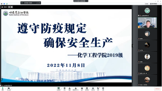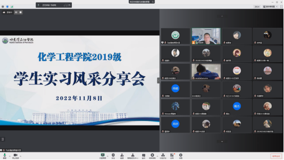 为了促进学生认真完成实习阶段教学任务,交流实习心得感悟,引导学生自我总结,2022年11月8日、9日,化学工程学院召开2019级学生第六次主题班会,会上进行学生实习风采分享。学院副院长彭殿宝、辅导员马志强主讲,2019级学生线上参会。