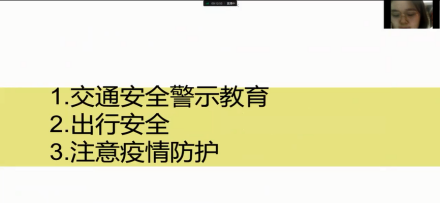 在班会中,王雪老师也围绕交通安全、财产安全、人身安全和疫情防护等方面对同学们进行了再提醒和教育,对在实习期间可能遇到的安全问题进行了提示,也督促同学们在实习期间要珍惜时间,努力提高自身专业素养,为就业做好充分准备。