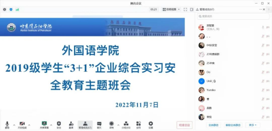 为完善冰球官网“3+1”人才培养体系,助力本科生高质量就业,保障19级实习生安全,外国语学院于11月2、7日分别召开了两次线上会议,会议由辅导员郑智慧主持。