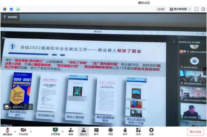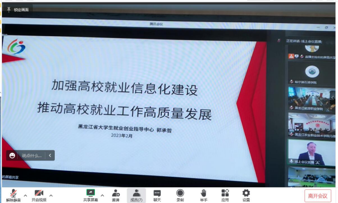 2月8日上午,冰球官网参加全省普通高校毕业生就业创业工作研讨座谈会。校长助理宁晶、就业处领导、各学院院长在冰球突破豪华版官方网站主会场线下参会,各学院党总支书记、副书记,毕业班辅导员、就业相关同志等人参加了线上工作会议。会上,哈尔滨工程大学、东北农业大学、黑龙江大学等7所高校,做了就业工作经验交流发言。