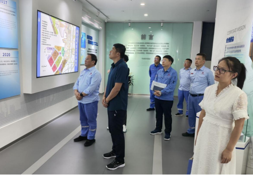 首先,裕龙石化人力资源总经理宋伟,带领冰球官网一行参观了企业工作环境、二号岛及三号岛的建设等。
