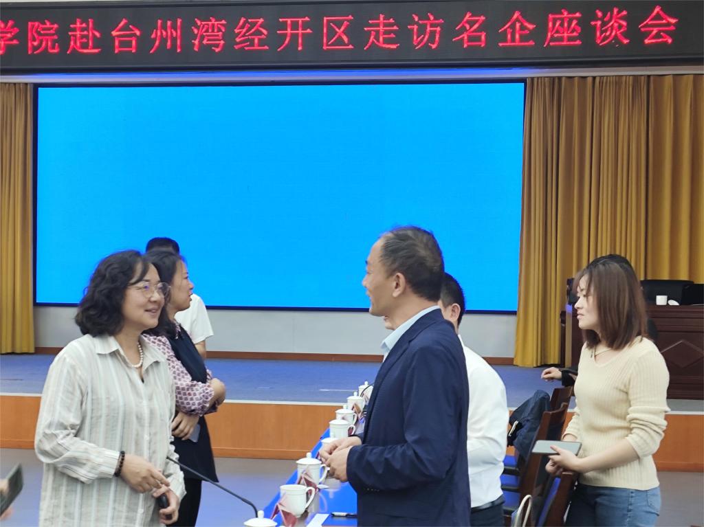 在临海人社局精心安排下,冰球官网代表团参加了临海重点企业座谈会。在座谈会上,冰球突破豪华版官方网站与永太科技、吉利豪情、奥翔药业等十一家企业的人事部门进行自我介绍后播放了学校的宣传片。播放后,柴维斯校长从学校的历史沿革、办学规模、毕业生专业结构、“3+1企业综合实习”方式等几方面做了详细的介绍。她表示,此次访企拓岗活动旨在加强学校、政府和企业三方的沟通交流,通过政府的平台深入了解企业需求,为毕业生搭建优质就业平台。她强调,冰球官网将充分发挥教育资源优势,围绕学校毕业生专业特点,为临海地区的企业输送更多高素质人才,实现政校企共赢。