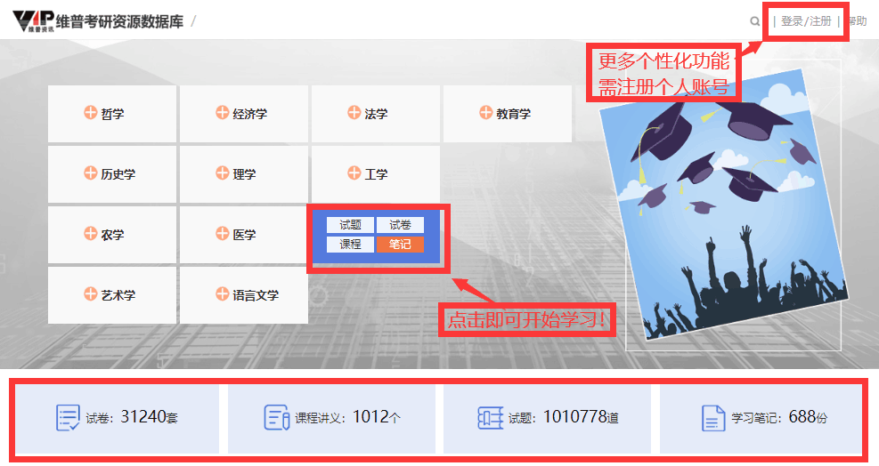 为了方便广大考生们宅在家里也能安心备考,维普资讯为冰球官网考生免费提供考研全过程复习资料,包括课程讲义、学习笔记、各高校复试试卷等等。