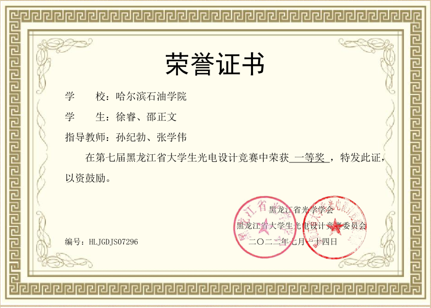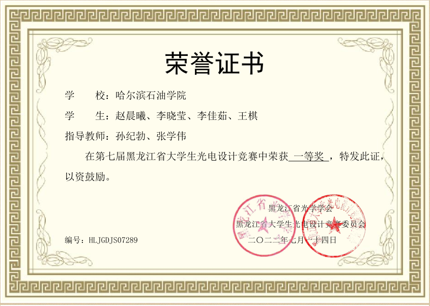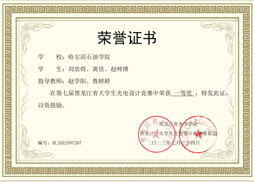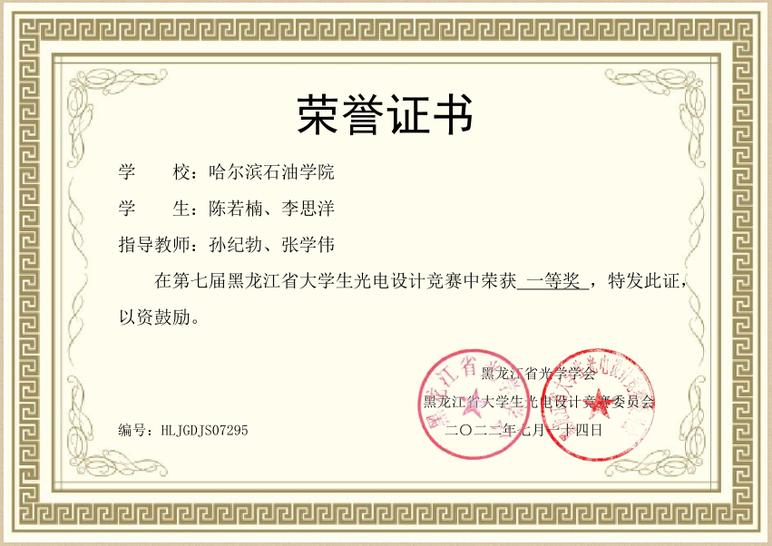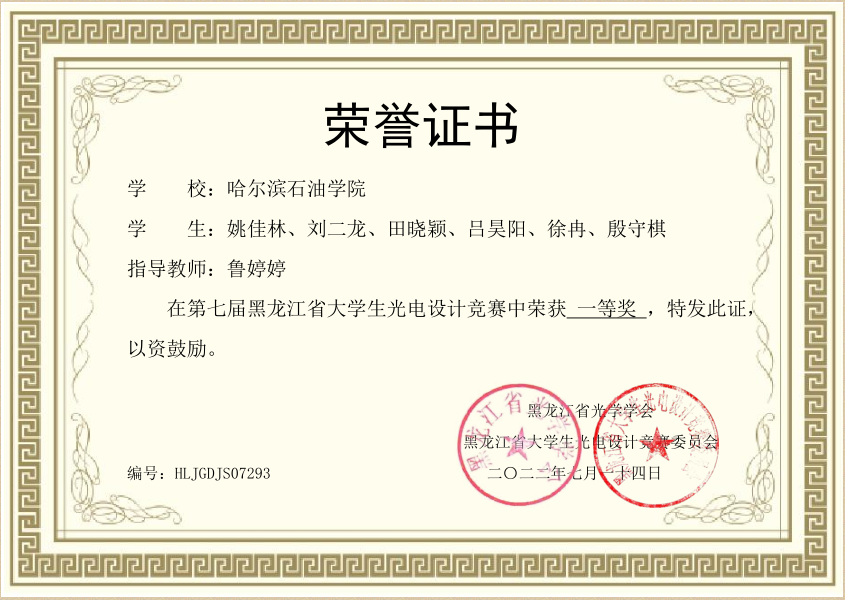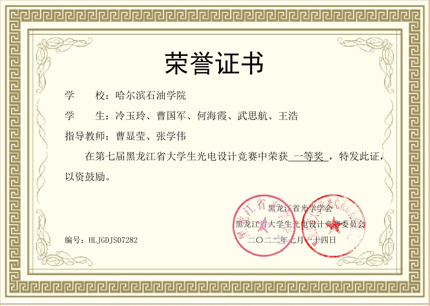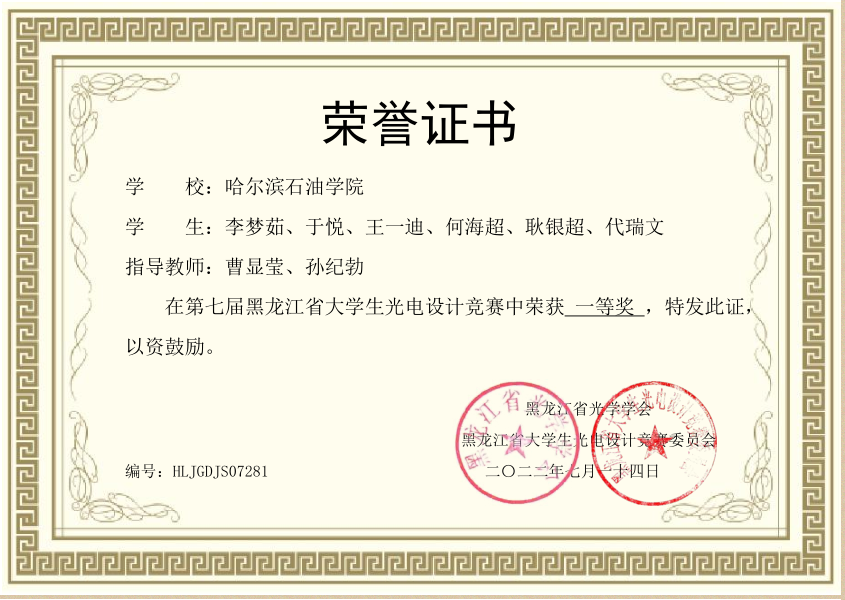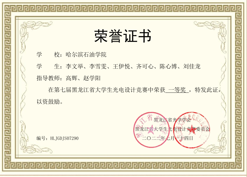 2022年第七届黑龙江省大学生光电设计竞赛一等奖名单