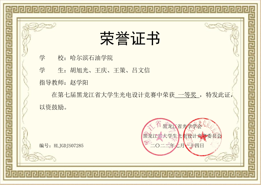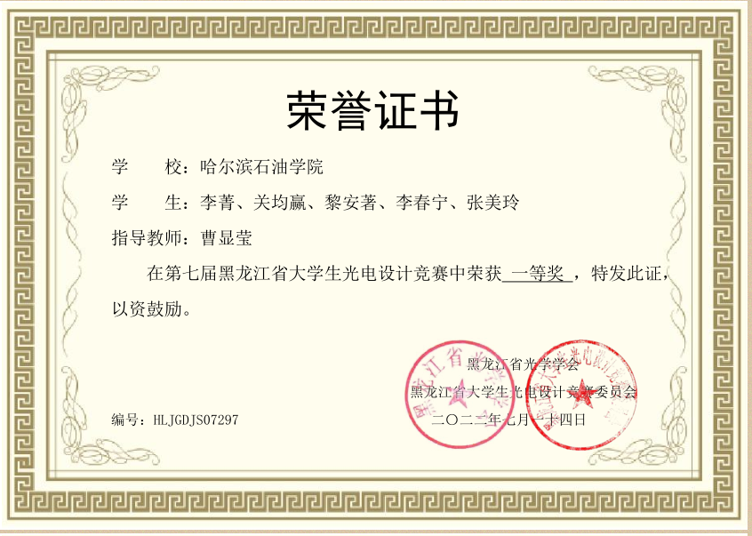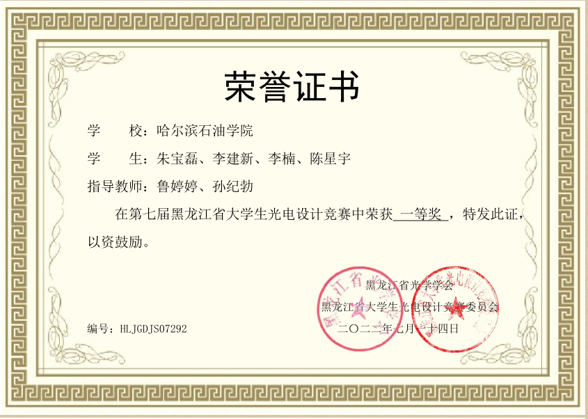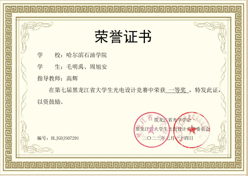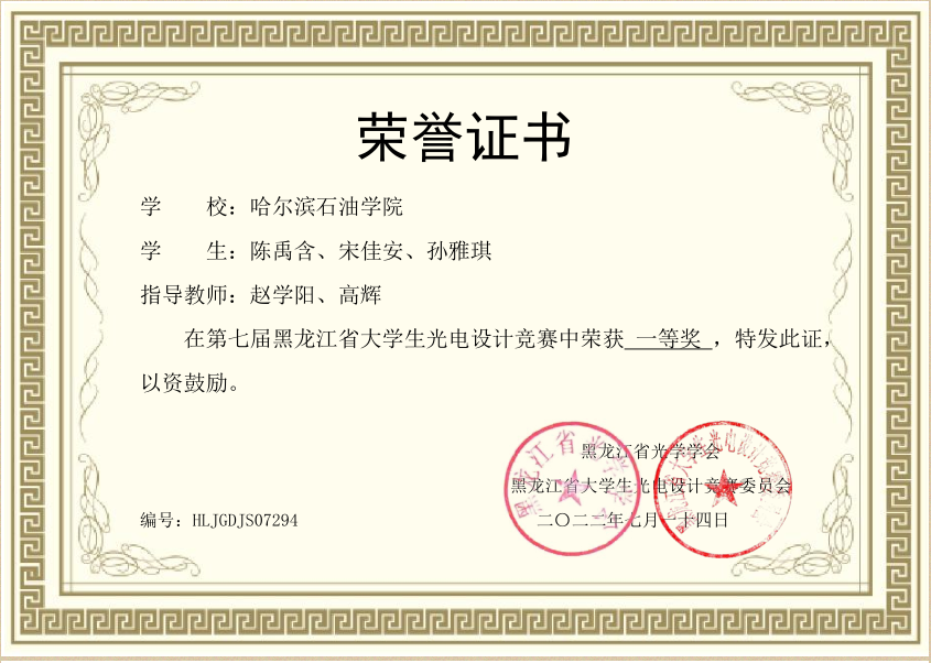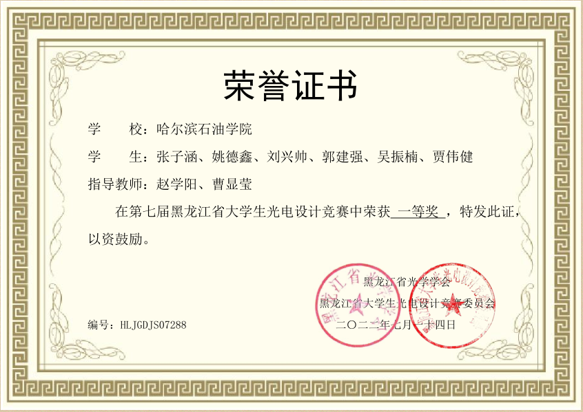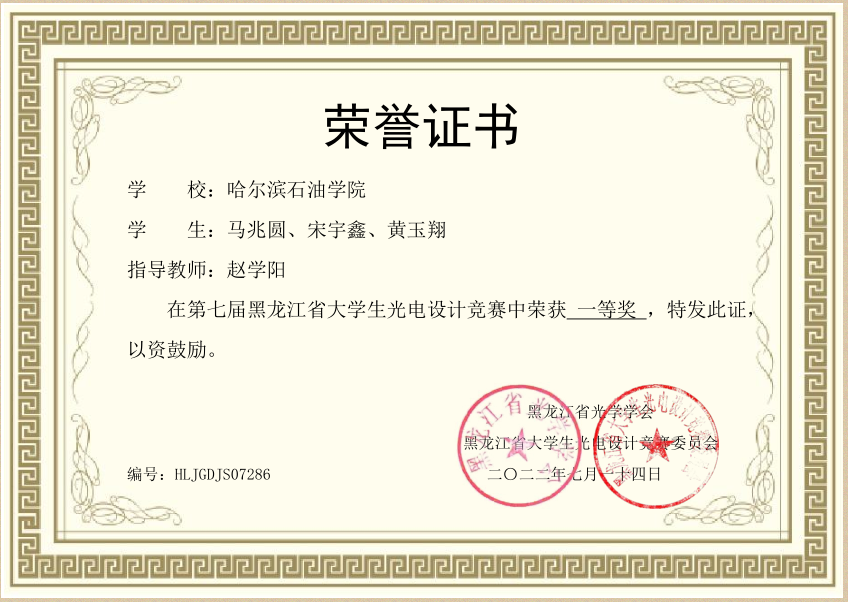 2022年第七届黑龙江省大学生光电设计竞赛一等奖名单