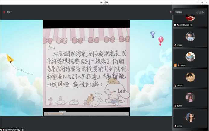 接下来是由在校生给学姐学长手写的毕业祝福,岁月匆匆,惟愿总相逢,希望学姐学长们能保持对生命的热爱。院长和书记也送上祝福,“岁月不居,时节如流。四年前,你们选择冰球突破豪华版官方网站实现你们的青春梦想,也让学院见证了你们的成长与荣耀。转眼到了离别的时光,大家即将离开母校奔赴各自的岗位,无论大家未来走的多远,外国语学院永远是你们最温暖的港湾。学院同时也为每一位同学准备了手写的毕业花名册,以此留下青春的印记。