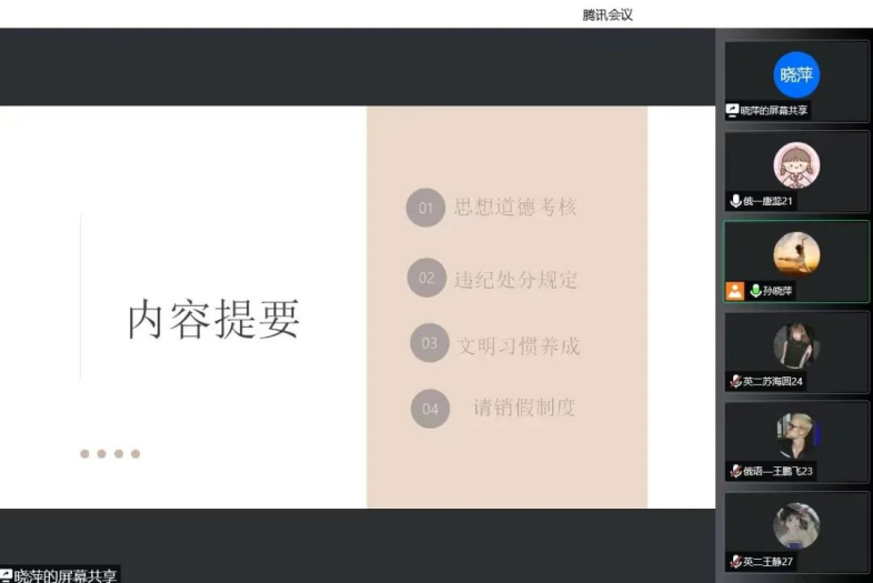 一是思想道德考核;用道德去引导优良学风建设,用文明去规范教化学生的行为,以内驱动力主动地反省失误,改正错误,勤奋学习。二是违纪处分规定;强调同学们要遵守学校的校规校纪,详细的介绍了向大家重点介绍了冰球官网违纪处分条例、学生在校行为准则等相关规定。三是文明习惯养成;强调同学们重视学生寝室的安全管理与寝室文化建设,希望同学们能养成良好文明习惯。四是请销假制度;学生不能按时到课,应当事先履行书面请假手续,然后填写请假单,说明请假原因、时间,并及时告知辅导员。最后,孙晓萍强调同学们一定严格遵守学校的规章制度,严于律己,争做一名优秀大学生。