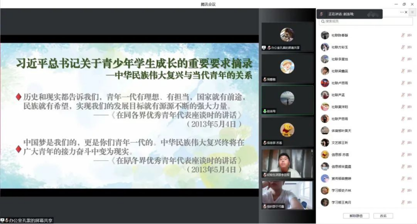会议伊始,赵连琦先讲述了“习近平总书记关于青少年学生成长的重要要求摘录”。提到“历史和现实告诉我们,青年一代有理想,有担当,国家就有前途,民族就有希望,实现我们的发展目标就有源源不断的强大力量。”