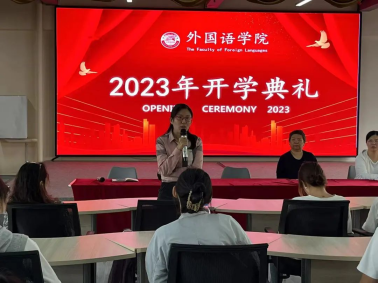 金桂飘香,金秋送爽。2023年9月4日,外国语学院在大学生活动中心隆重举行2023级学生开学典礼。学院领导班子成员、全体辅导员老师、2023级新生教师班主任、辅导员助理老师及全体2023级新生参加本次典礼。开学典礼由学院团总支书记赵连琦主持。