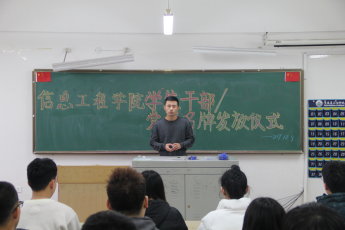 为促进信息工程学院学风建设,巩固质量提升工程阶段性成果,发挥学生干部带头作用,鼓励学生党员亮明身份接受监督。信息工程学院于12月9日中午,在二教405举办信息工程学院学生干部/党员身份牌发放仪式。本次仪式由党总支书记毛雷老师、副书记张宏鹏老师主持,信息工程学院全体学生干部及党员参会。