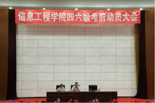 为加强学风建设、严肃考风考纪,建立浓厚学习氛围。信息工程学院于2019年6月13日在图书馆报告厅召开了四六级考风考纪动员大会。信息工程学院党总支书记毛雷,院辅导员陈方圆出席本次会议。