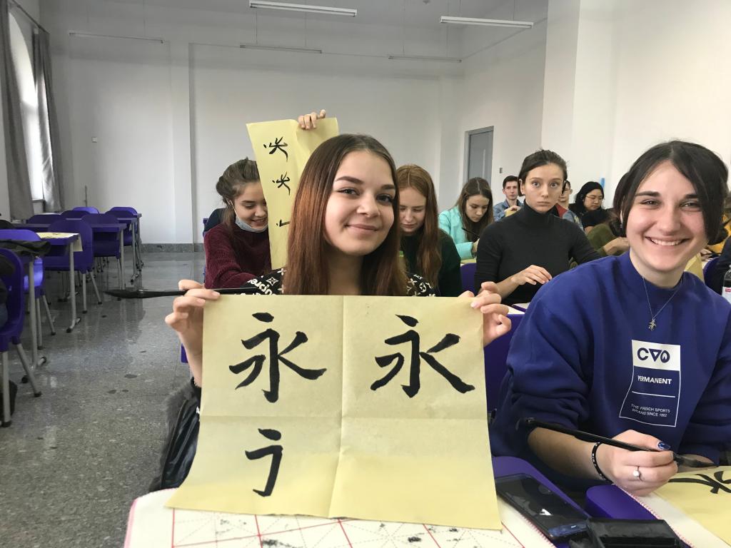 为传承中国古典文化,感受书法之美,国际教育学院于10月30日开展了留学生书法课活动。本次书法课由徐健老师前来授课,通过古色古香的中国书法让留学生接触并了解中国传统文化。活动伊始,徐健老师通过PPT讲解及相关图片展示,让在场学生们了解到书法的千年历史与演变过程。在实践环节中,留学生们纷纷挥毫“泼墨”,当中有人正襟端坐而书,有人站立悬肘而写,在翰墨书香中真切地感受着这门“形与意”、“气与力”相结合的东方古...